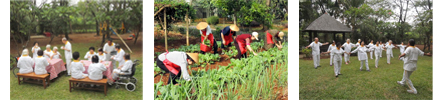 Programs are routinely held on Monday to Friday. They include Morning Workouts, Jogging, Yoga, Gentle Aerobics, Reading, Watching film / video, and sharing Experience.